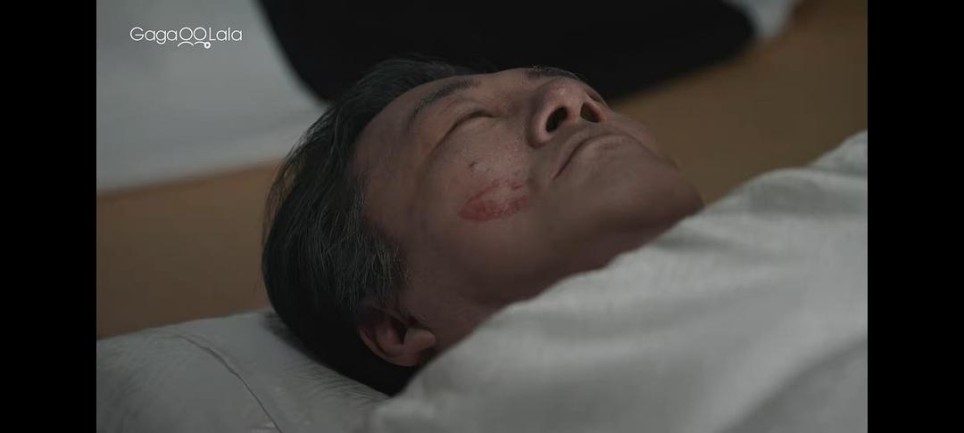 比如花心:三代目年轻的时候也是个帅哥,一生风流倜傥,阅女无数,说白一点就是非常好色,所以底下的小弟对于“攻是老大私生子”的传言没有一个人怀疑过,因为大家都觉得以他的个性是真的可以做得出来。其实我不太理解为什么剧组一定要把时间背景放在当下,因为桐井组这整个黑帮看起来就完全像是从昭和年代穿越出来的老古董,大男子主义的现象(或者用时兴的话来形容,叫登味儿)特别重,还是一直认为更“男人”的男人更受女人欢迎,所以情人越多,就表示自己越man(我好像八百辈子没用过这词了),所以【风流】更像是一种勋章,所以在三代目的葬礼上,攻给一生好色情人不断的【父亲】三代目投其所好地添了个口红印(是说你们还挺会给老人家们搞投其所好这一套的,我上一场看到“如此投其所好”的葬礼节目好像还是《靛蓝色的心情》的灵堂doi,当然更久远一点的还有全家人一起弹着尤克里里给逝者唱歌之类的),